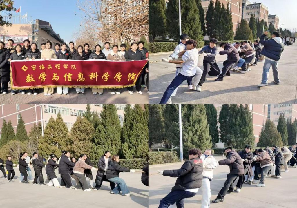 随着哨声响起,拔河比赛正式开始。我院队员们紧握麻绳,口号铿锵、步调一致,将团队力量凝聚在每一次发力之中。我院先后与体育学院、研究生院、教育学院等队伍进行比拼,麻绳上的红绸带反复拉锯,尽显拼搏热血。在与教育学院的对抗中,最终我院以微弱优势取胜,大家不畏强敌、奋勇争先的姿态,充分展现了数信学子的昂扬风貌。