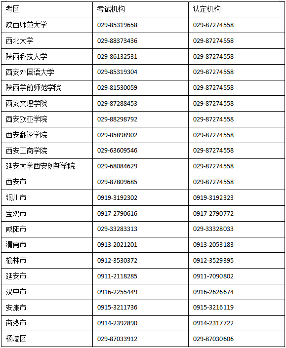 附件:陕西省各考区教师资格考试认定机构联系方式