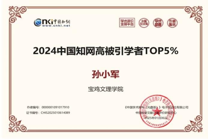 近日,中国知网下属的中国科学文献计量评价研究中心公布“2025年全国高被引学者”榜单,我院孙小军教授成功入选TOP5%高被引学者行列。 这是孙小军教授继2024年之后,连续第二年跻身该榜单,充分彰显了他及其团队在数学课程与教学论领域较深的学术积淀与持续的学术影响力。