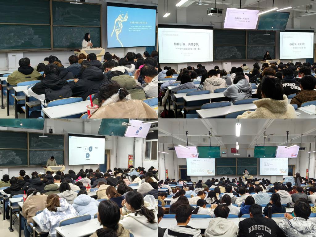 10月23日晚,太阳集团tyc138在思贤楼420教室举办“榜样引领,共筑学风”学习经验分享会(第一期)。学院2025级本科生、一站式社区学风建设功能性团支部成员、学习优异的朋辈典型共200余人参加分享会。分享会由学生辅导员魏研主持。